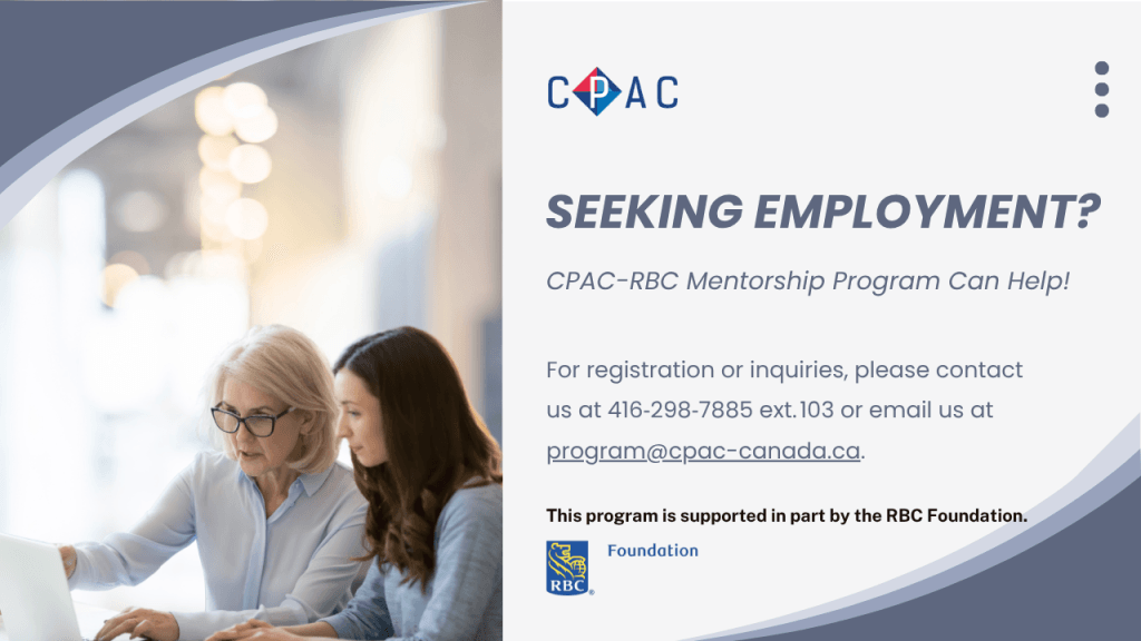 Only 1 Spot Left! CPAC-RBC Mentoring Program Starts Oct. 7